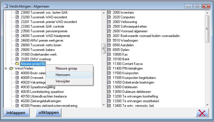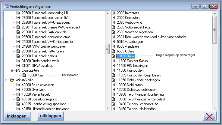 rechterpaneel verschijnen nu de grootboekrekeningen die onder ‘balans’ vallen.