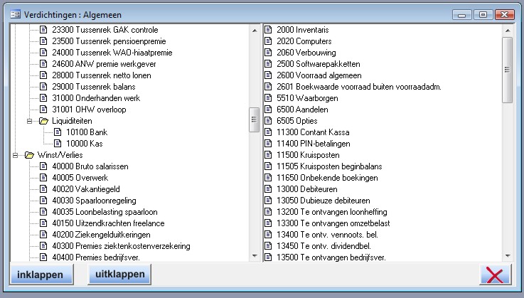 verdichtingsschema is een lijst met grootboekrekeningen en eventuele