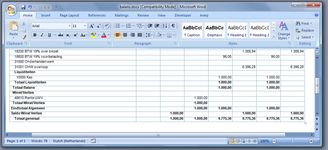 balans kunt u ook een totale uitdraai van het grootboek maken over een bepaalde