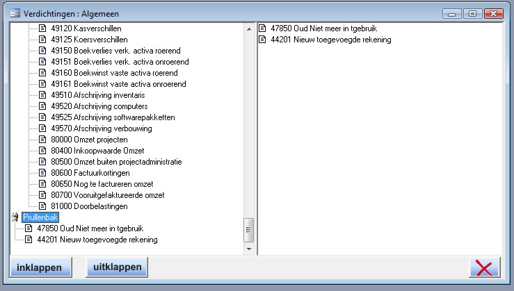 verdichtingen. De verdichtingen dienen om groepen van grootboekrekeningen aan te