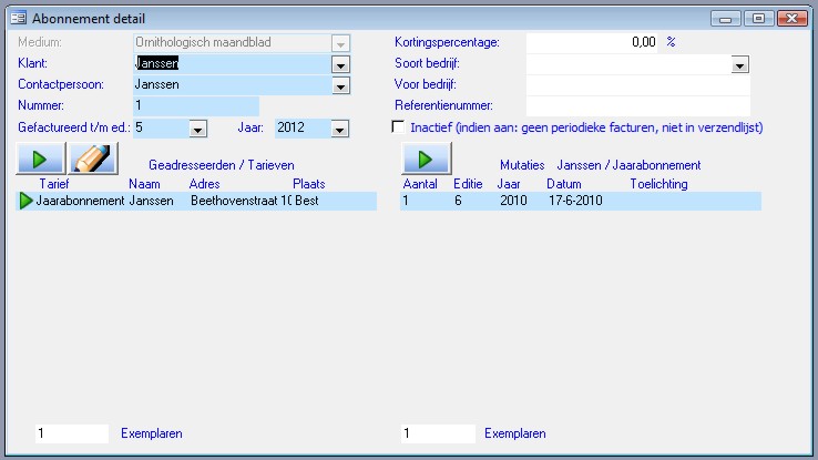 gegevens van factuuradres, korting etc. Pap maakt altijd per abonnement 1
