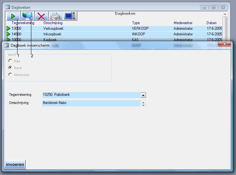 maakt u een nieuw dagboek (plaatje 1). Wanneer u op de regel van een bankboek