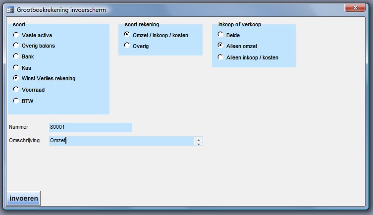 invoeren bv de rekening in plaatje 4 wijzigen in een rekening voor zowel omzet