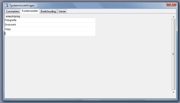 overgenomen bij invoeren van een nieuw project en is later eventueel op