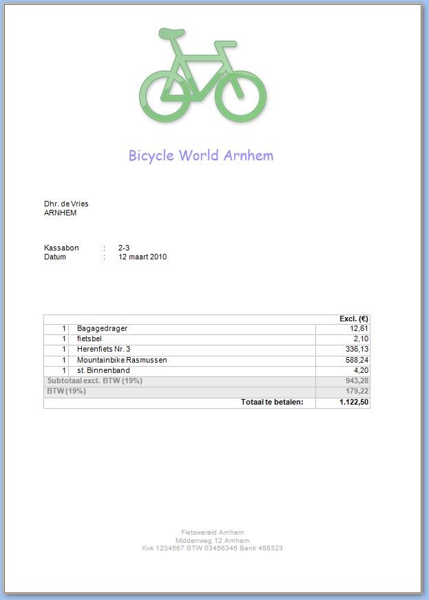 Het bonnetje kan ook als Word document worden afgedrukt (wanneer u bij ‘Word sjabloon’ plaatje 3 iets hebt ingevuld). U kunt de Word-sjabloon geheel van eigen opmaak voorzien (evenals het bonnetje hierboven).